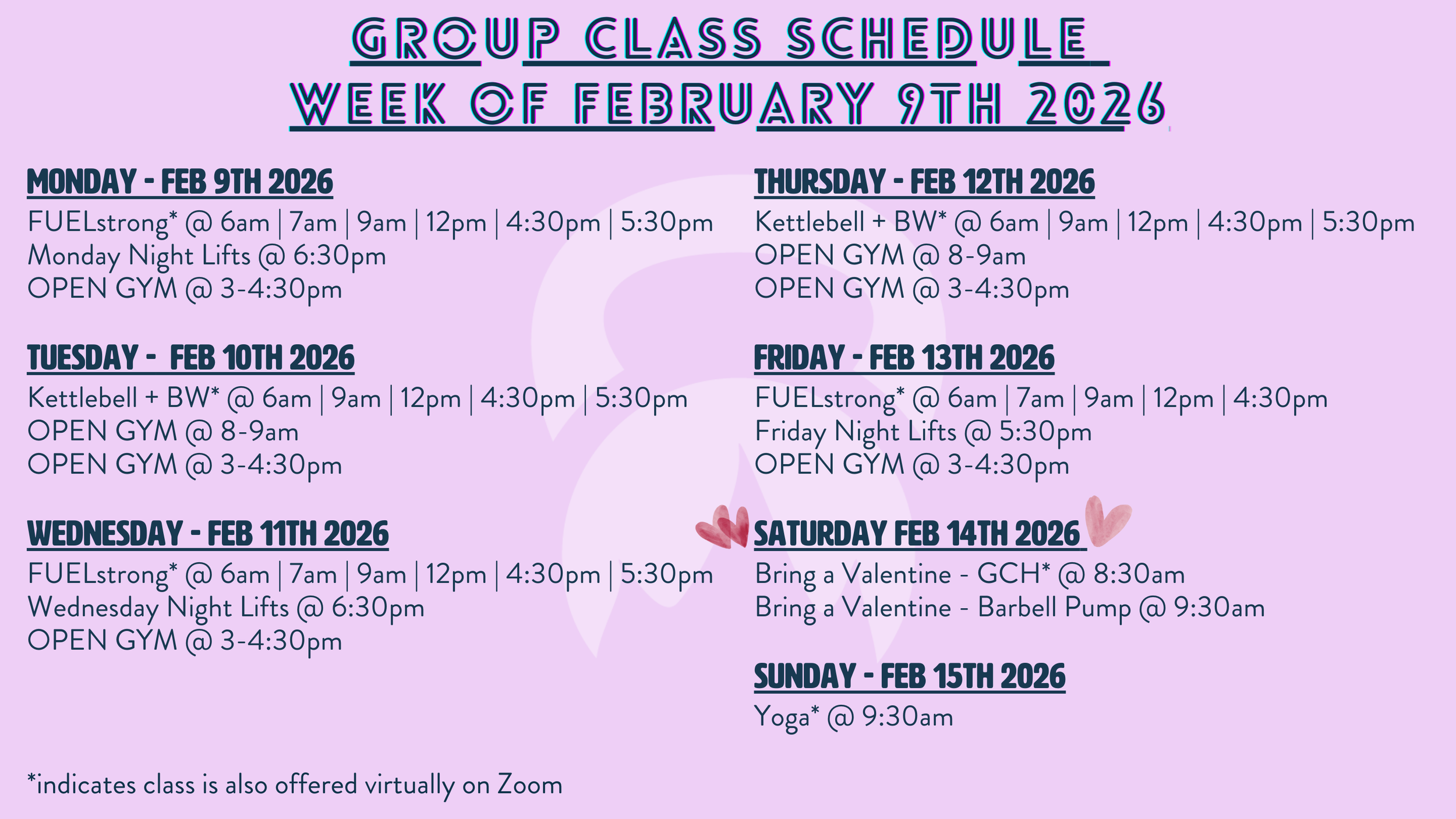 Group Class Schedule + Programming: Week of 02/09/26