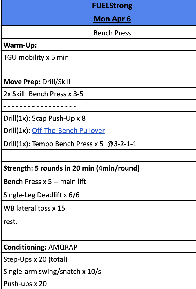 Week FIVE of our new programming — leading us to our Spring Strength Challenge April 25th!